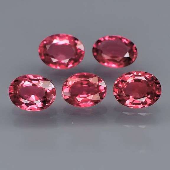 This 5 piece set displays bright pink hues with velvety violet undertones, and glittering full bodied flashing through eye clean to VS clarity. They are well matched in size, measuring 8x6mm each with an average weight of 1.50 carats, and have a Mohs hardness rating of 7-7.5 out of 10, making them perfect for setting. Sourced from Mozambique. Untreated!