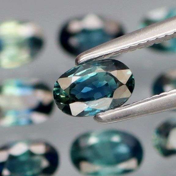This 9 piece collection of sapphires exhibits a mix of rich blue, green, and yellow hues with swirling saturation, and are well matched in size measuring approximately 5mm x 3mm each. They were heated only, with no dyes or fillers, and have a Mohs hardness rating of 9 out of 10. These gems were sourced from Australia, and present glistening superior lusters.