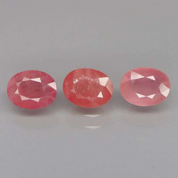 This is a heavy set cut from pure Madagascar ruby! And they are heated only! No dyes or fillers in these gems. They exhibit rich red hues with pronounced pink undertones resembling Benjamin Britten roses, but with a dusky quality. The smoky clarity adds to their color palettes, diffusing the light while strengthening their tones, and giving them a lovely glowing quality in brighter lighting. This set has amazing size, with each ruby weighing approximately 2.82 carats each and measuring 9x7mm. That is three whole center stones for the price of one! They are classically cut with lusters that are so well polished that they almost have a metallic sheen. And with a Mohs hardness rating of 9 out of 10, these rubies are ready to set and impress in any daily wear jewelry.
