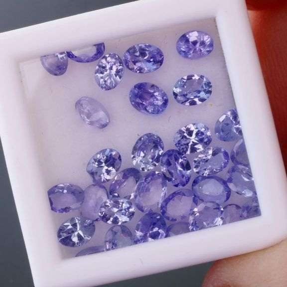 Measuring approximately 4x3mm each, this large 34 piece set is well matched in size, with each exhibiting brilliant flashing through VS to SI clarity. The color palette of these tanzanite moves through silvery blues and violets under superior lusters, and they are perfect for setting. And although heating tanzanite to deepen their color is is the industry standard and can be expected for most tanzanite, this set is UNTREATED! Sourced from Tanzania.