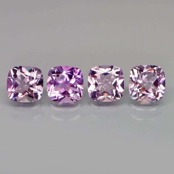 Holy cow is this a nice set! You have not one, not two, but FOUR beautifully matched all natural Bolivian amethyst. They show bright pinkish lavender hues with just a touch of the color shifting that these gems are known for. This gives you constant movement in color dominance between lavender and pink depending on your surrounding lighting! And these amethyst love to sparkle! Not only do they exhibit brilliant sparkling flashing on the inside, but their tightly faceted cuts and high polished superior lusters produce sparkling across the entire outside as well. They are very well cut showing amazing symmetry, and are beautifully matched in not just color and intensity, but size also measuring 8x8mm each. And with an average weight of 2 carats per gemstone, these amethyst are perfect for single setting or as a four piece set. Can you imagine this set as a pair of matching earrings, pendant, and ring? Or maybe you and three friends were born in February and need matching rings. Or maybe you just really like lavender. Either way, you've got a spectacular set of Amethyst. And they are untreated!