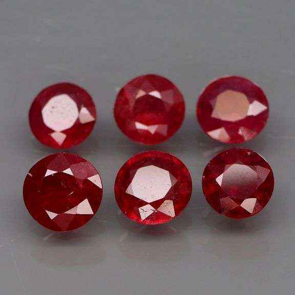 Don't miss this gorgeous set of rubies. They all exhibit translucent bodies with deep blood red hues that seem to glow in the light, and glistening superior lusters that twinkle against every facet. This 6 piece parcel has well matched cuts, measuring about 5.5mm to 6mm each, and were heat treated, evident by the presence of lead bearing glass. Sourced from Mozambique.