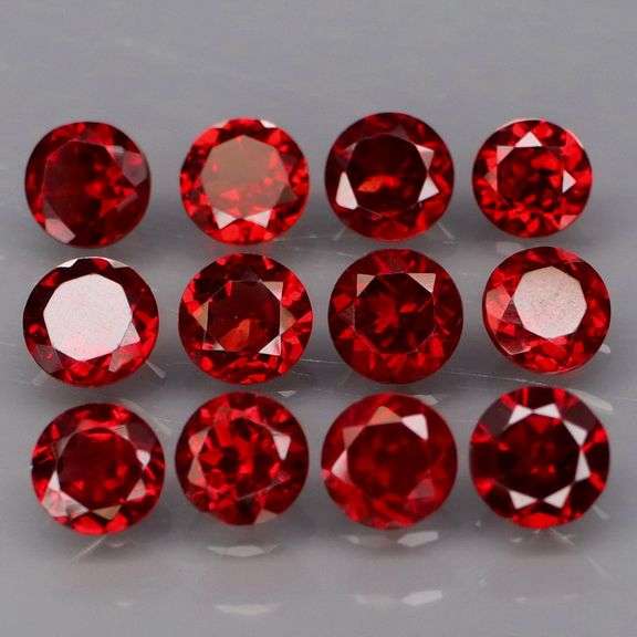 Is this a set of glittering red diamonds??? No, but it could be by the looks of them. This incredible 12 piece set delivers so much flashing, you won't know whether they are a classic Mozambique red, or brilliant cherry red. Either way, you're going to love them! The color behind the flashing is lush and velvety with rich saturation in a classic deep red, but hit them with some light, and they become fiery little sparkle bombs in brilliant cherry red through VS clarity They have outstanding diamond cuts with premium polished lusters that twinkle across every surface, and are beautifully matched measuring 4.7mm to 5mm each with an average weight of .53 carats. And they are all untreated! Don't miss these high end garnets!