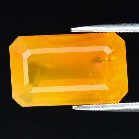 This is a piece that you should definitely take a look at. It not only features a vivid orange hue similar to Mexican fire opals, but also lovely interior characteristics that you don't regularly see in Mexican fire opals. First of all, it has a lovely feather on one side that produces vibrant flashing due to natural crazing that is common in these opals. Then it has very interesting frosted inclusions that are suspended in the opal crystal, with an orange cloud on the side, and a frosty translucent white along the bottom giving it a smoldering quality. And it has fantastic size! Weighing 8.73 carats, it would already be considered a large gem. But, since opals have less density than other gemstones, their size to weight ratio is amplified, so your 8.73 carats translates to a whopping 16.5mm x 10mm x 8.7mm. This, combined with its emerald cut and glass like luster gives you plenty of space to watch this gems display. Sourced from Africa. Untreated!