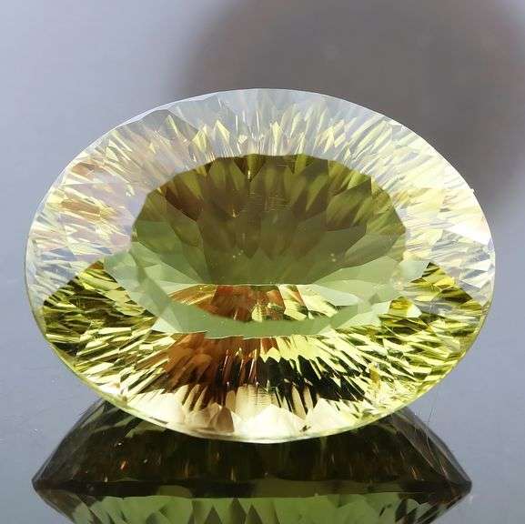 This is an extreme citrine! First you have its size. It measures a whopping 32mm x 24.8mm x 17.1mm! That's HUGE! Now look at that cut! The deep concave faceting of this piece creates electric shocks of sparkle that fills it from top to bottom. There is no angle or lighting condition that doesn't create a brilliant light show, and its fiery display glitters in lemons and platinum yellows, and can easily be seen not only at arms length, but from across the room. And when you add that to the stunning lemon yellow color of this piece and its excellent VS clarity, you get a gemstone that will impress for generations to come. Sourced from Brazil. UNTREATED!!!