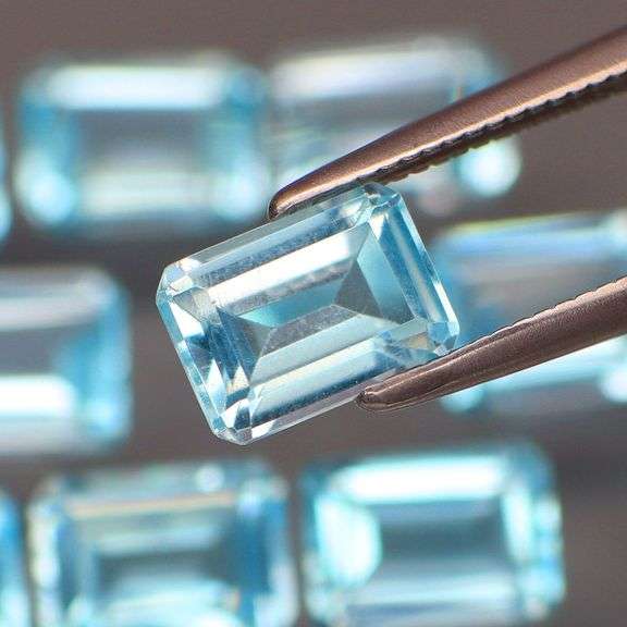 These topaz are filled with brilliant blue hues, and have vivid saturation with premium eye clean clarity. They have an average weight of 1.30 carats each, and are filled with high fire linear flashing. All eight gems are beautifully matched in size measuring 7x5mm each and have a Mohs hardness rating of 8 out of 10 making them perfect for setting. Sourced from Brazil.