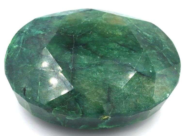 Amazing Colossal 771.05CTS Oval Faceted Genuine Emerald precious Loose Gemstone. Measurements are 67.84x53.07x27.81mm. Also, accompanied with a G.L.A. certificate. This piece has been professionally appraised for retail replacement value. Please note, the appraisal reflects retail pricing and does not represent auction or resale value.