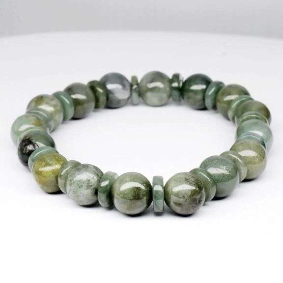 Holy cow! Look at that color! The color of these jade beads is incredible. Whether seen close up or at a distance you can see that these jade posses a rich moss green hue that is both elegant and commanding with jade spacing rings that deliver multiple green hues. The bracelet consists of 32 individual pieces with the beads measuring 8.5mm to 10.5mm each, and each piece has a glossy luster that gives them the appearance of being wet. And the best part is, you can put it on your wrist as soon as it arrives! Sourced from Myanmar (formerly Burma). Untreated!