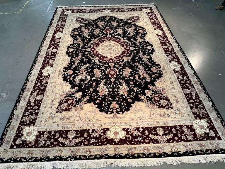 Oversize Super fine Sino Persian Tabriz Medallion design rug natural wool pile with silk highlights in Black, Burgundy and multi accent colors Handknotted in China