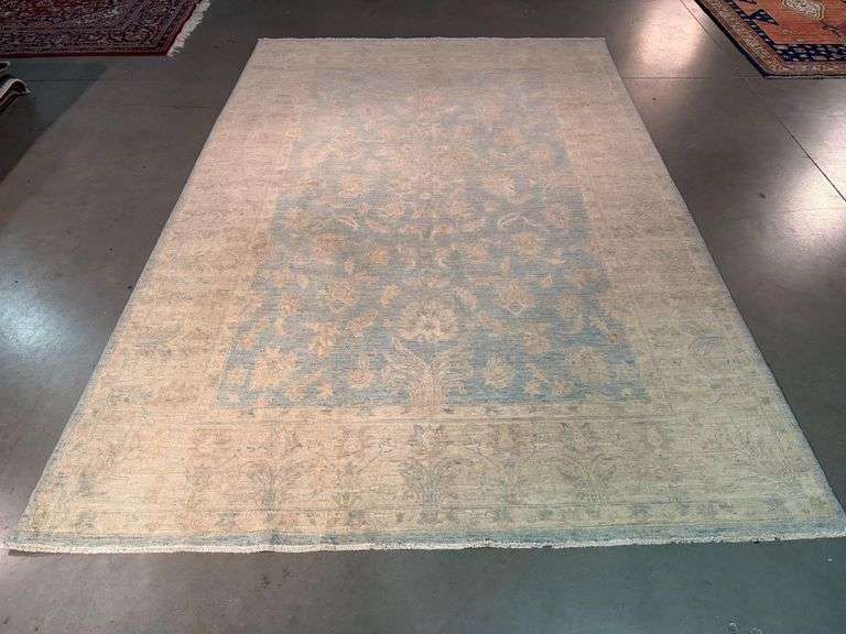 Super quality Antique design zighler Rug, hand spun and hand knotted rug in Pakistan 100% Vegge Dye natural wool Pile in Antique finish , light blue Ivory colors.