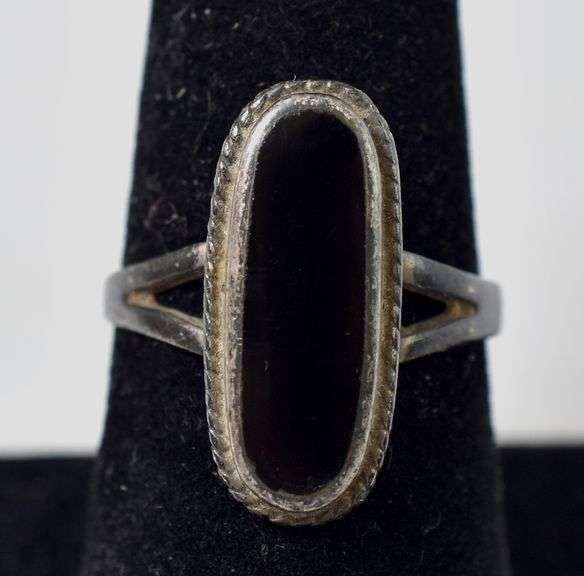 Black Onyx Gemstone Ring in Sterling Silver 4.2grams Size 7 1/4. This adorable sterling silver ring displays an oval cabochon black onyx gemstone in a bezel setting adorned with a split band design. The size of this ring is 7 1/4. Total weight is 4.2 grams.