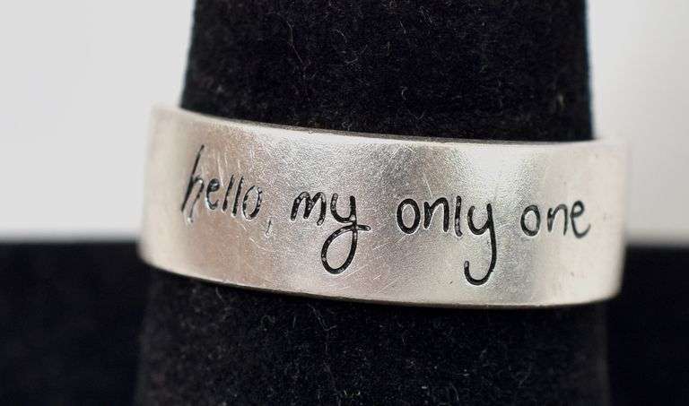 This cute ring features scripture reading "hello my only one"