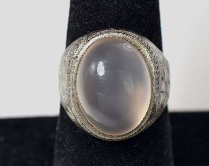 Translucent Stone Ring in Sterling Silver 6.9grams Size 7 1/4. This adorable sterling silver ring displays an oval cabochon translucent gemstone in a bezel setting. The size of this ring is 7 1/4. Total weight is 6.9 grams.