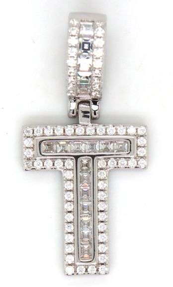 925 Sterling silver Initial T cubic zirconia pendant. The total weight of the pendant is 3.7 grams.