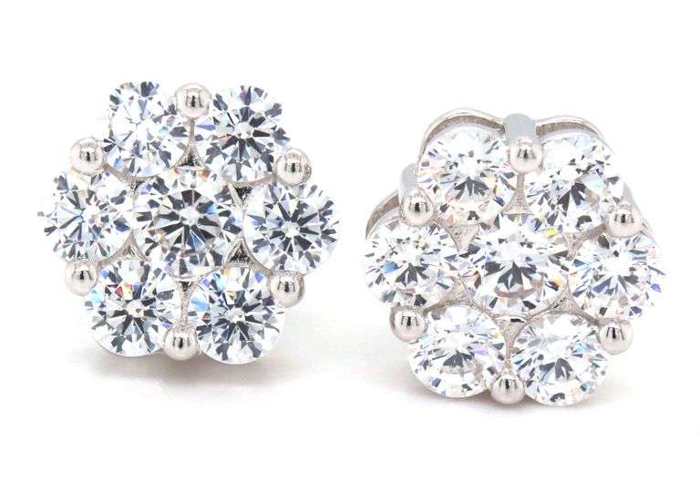 925 Sterling silver flower style cubic zirconia stud earrings. The total weight of the earrings is 3.4 grams.