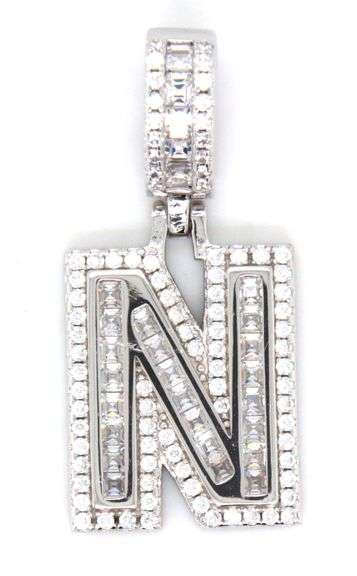 Initial N cubic zirconia pendant in 925 sterling silver. The total weight of the pendant is 5 grams.