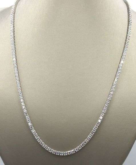 925 Sterling silver round brilliant cut cubic zirconia 22-inch tennis necklace. The total weight of the necklace is 31.5 grams.