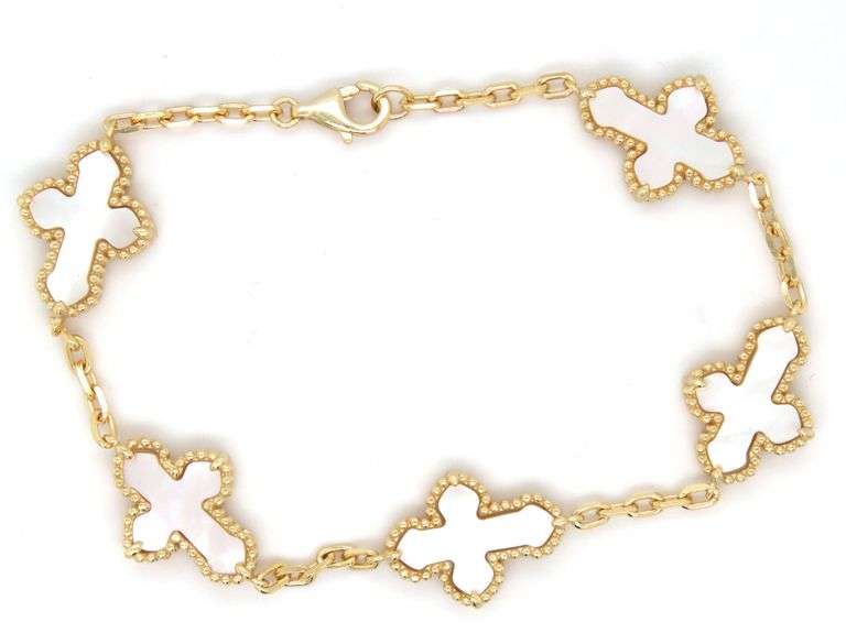 925 Sterling silver 5 cross mother of pearl 7.25-inch bracelet. The total weight of the bracelet is 8.2 grams.