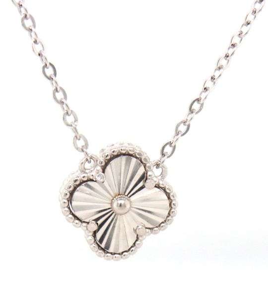 10mm clover pendant on adjustable 16-18-inch chain necklace in 925 sterling silver with lobster clasp. The total weight of the necklace is 4.7 grams.