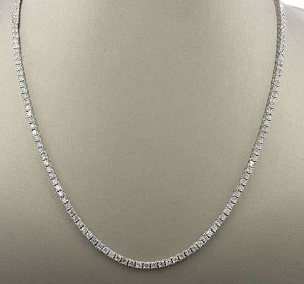 925 Sterling silver round brilliant cut cubic zirconia 20-inch tennis necklace. The total weight of the necklace is 25.2 grams.