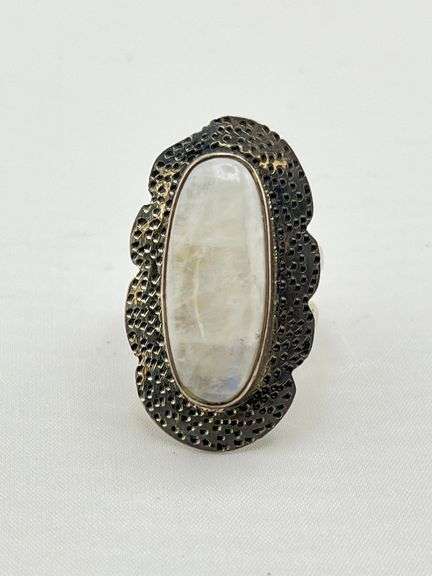 925 Sterling Silver Boho Style Large Rainbow Moonstone Ring. 10.2 grams. size 6.5