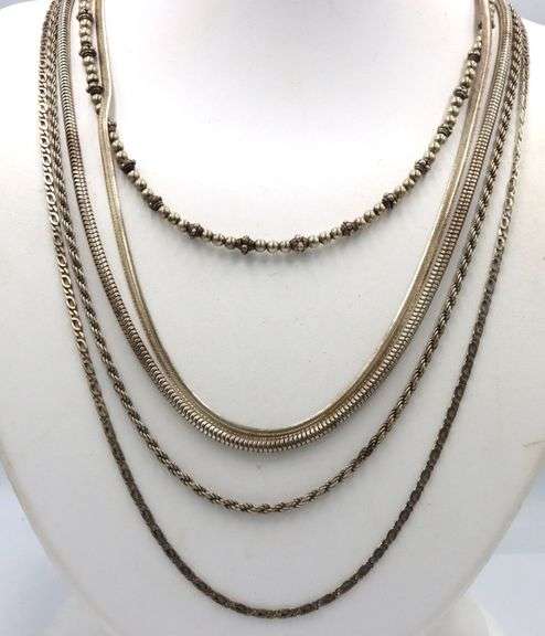 Group lot of 5 Vintage 925 sterling silver chains. The total weight of the lot is 55.3 grams.
