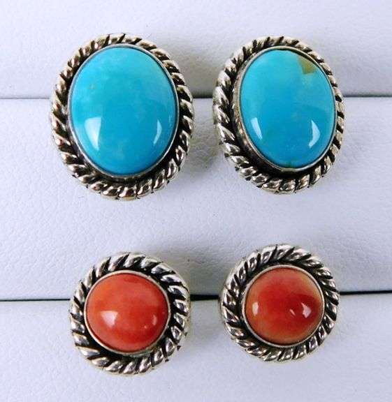 Turquoise studs 1/2", Coral studs 3/8". Both signed Q.T. 925. Original sterling backs.