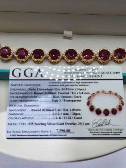 A true statement of elegance of Ruby and diamond Bracelet in Silver – GGA Certified. Set in lustrous silver and adorned with brilliant diamond accents, 41.60 CTW of Ruby, Size: 7, Accompanied by a GGA certificate, this piece has been professionally appraised for retail replacement value. Please note: the appraisal reflects retail pricing and does not represent auction or resale value