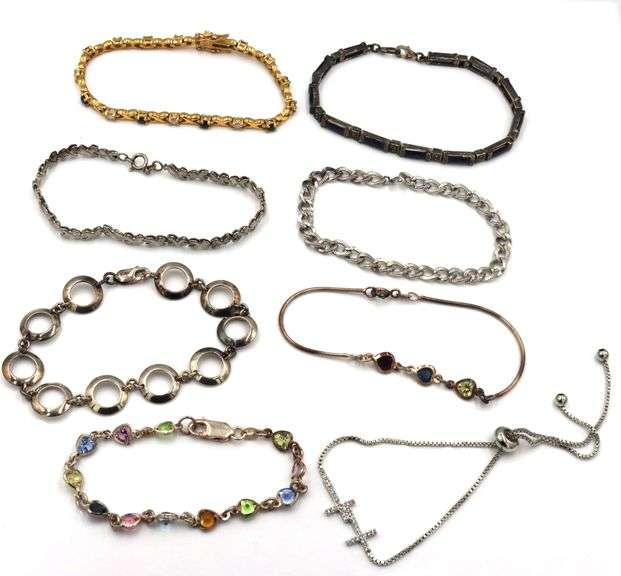 Vintage 925 sterling silver group lot of 8 bracelets. The total weight of the bracelets is 54.9 grams.