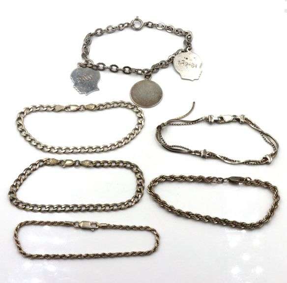 Group lot of 6 Vintage 925 sterling silver bracelets. The total weight of the lot is 47.3 grams.