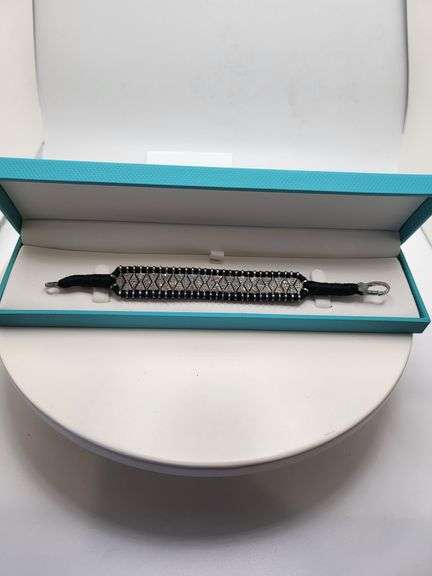 Handwoven Bracelet with Sterling Silver and Diamond Studs. Size: 6.75in
