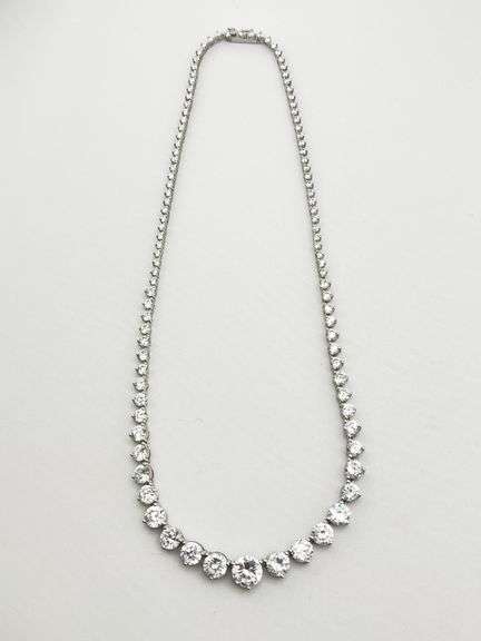 925 Sterling Silver Graduated Tennis CZ Necklace. 23.4 grams. 17inches