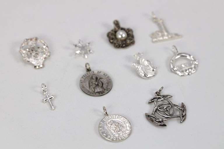 Total Weight: 26.1 grams. .925 Sterling Silver 10 Pendant Lot