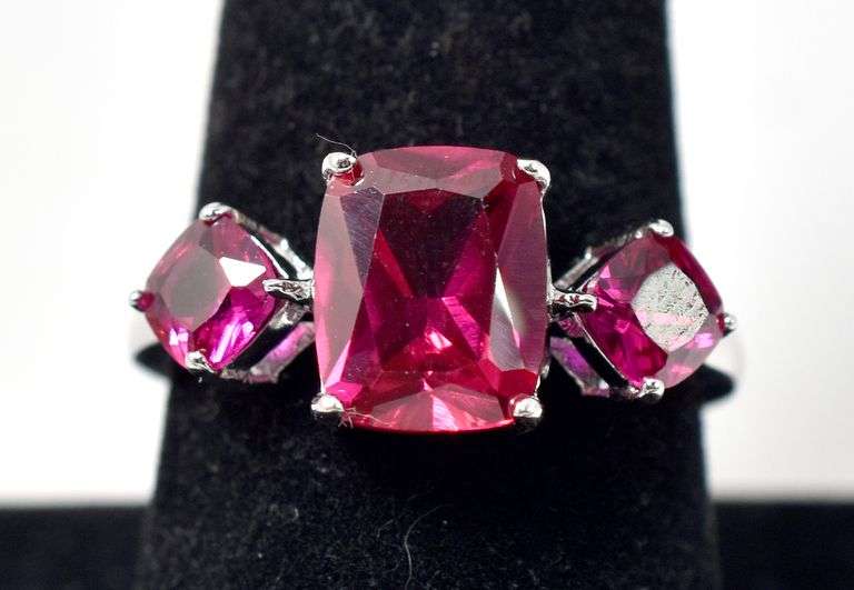 Bright Pink Genuine Stone Ring in Sterling Silver 4.1grams Size 8 3/4