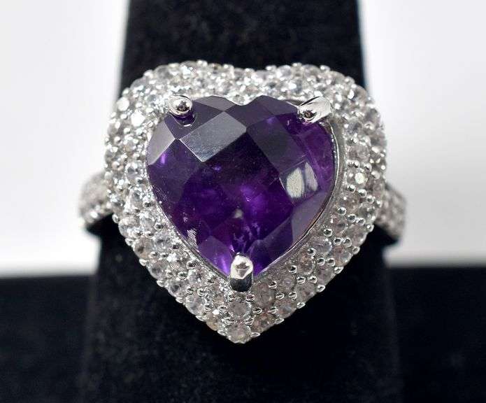 925 Sterling Silver Heart Shape Mandarin Garnet Surrounded With CZ Stunning Cocktail Ring. 12.7 grams. size 9.5