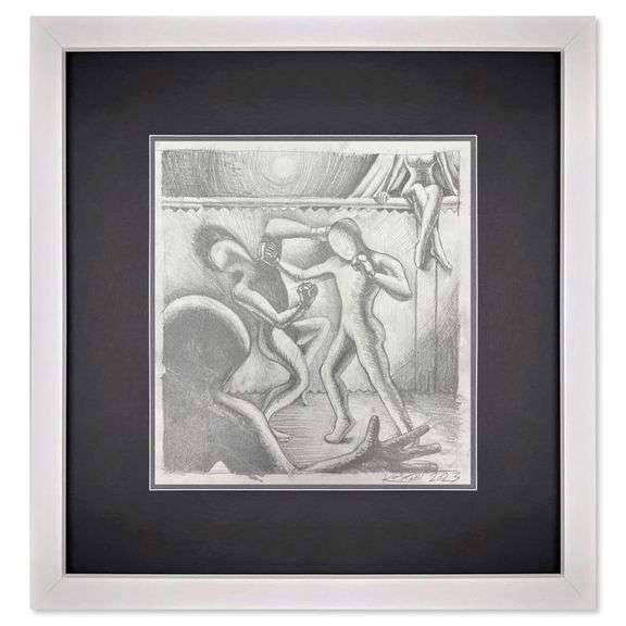 "Eyes on the Prize" is an original drawing on paper by Mark Kostabi, hand signed by the artist. This piece comes custom framed and includes a certificate of authenticity. Measures approximately 17" x 15.5" (frame), 11" x 9.5" (image). This item requires special handling and may have a longer than usual turnaround.
